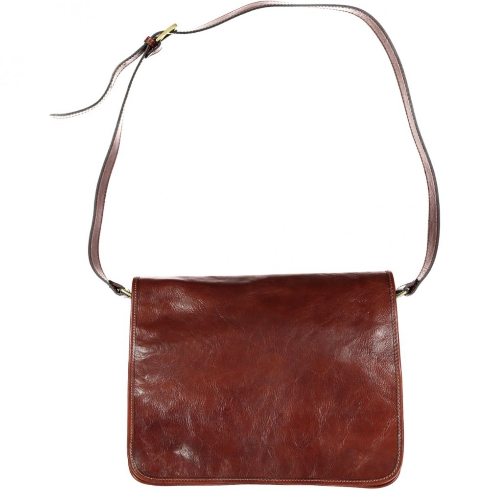 Bag with flap. 100% handmade product made in Italy. Made by skilled leather craftsmen through the use of bovine leather tanned with vegetable tannins and then buffered by hand.