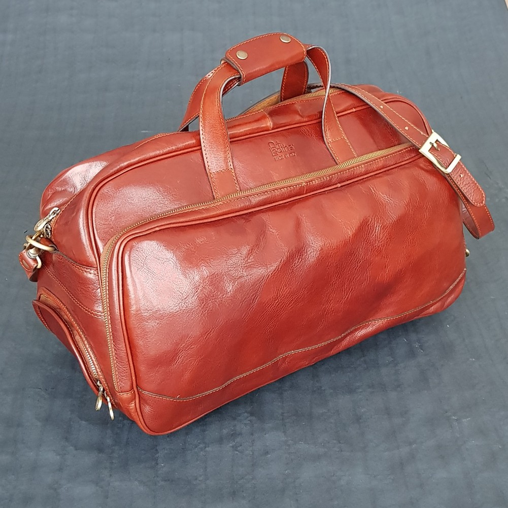 • Elegant travel bag, if necessary it can also become a trolley. The metal zip closures are manufactured by YKK.
