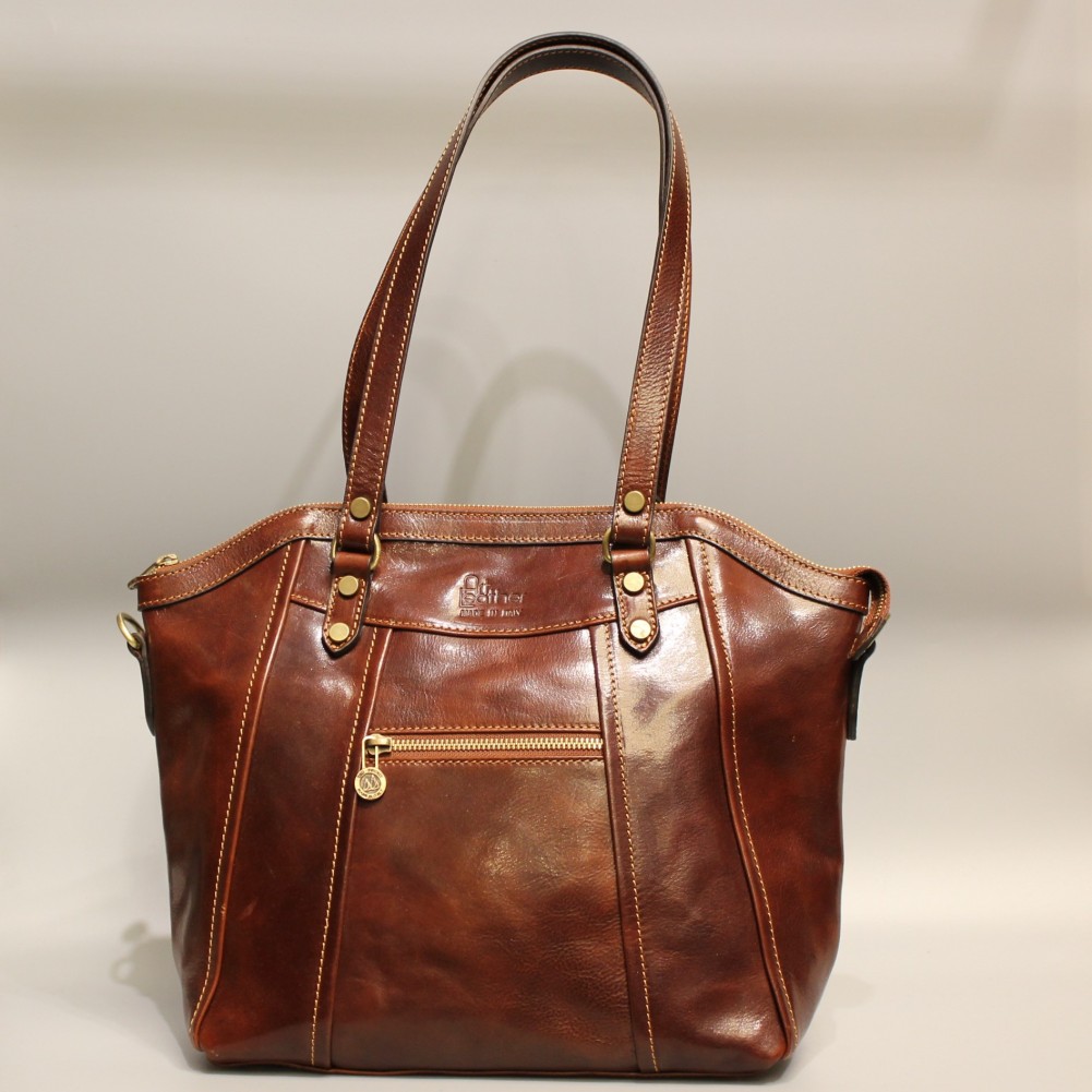 Borsa donna da lavoro o per viaggio, fornita di tracolle per essere portata anche a zaino. Le chiusure con zip metalliche sono prodotte da YKK.